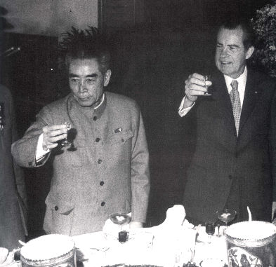 4月10日,美國乒乓球隊(duì)來到中國開始訪問。莊則棟和科恩兩人友好的“桃”“李”相贈(zèng),為中美長期隔絕對立的局面打開了缺口。莊則棟感慨地說:“我莊則棟這輩子只會打乒乓球,只能從臺的這邊打到那邊,還不停地下網(wǎng)出界。但能從地球這邊打到那邊的,只有毛澤東和尼克松!”