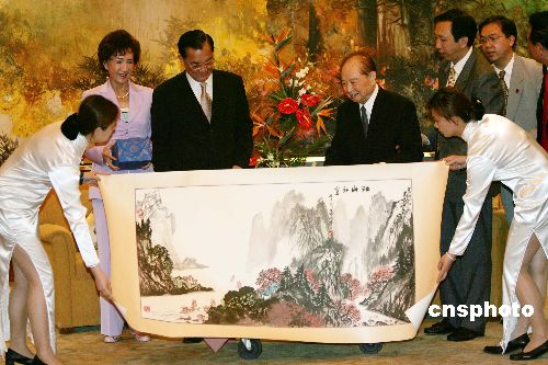 會(huì)見中,汪會(huì)長(zhǎng)向連戰(zhàn)主席贈(zèng)送了北京一位九十多歲的名畫家秦云嶺所畫的《江山如畫》及一九八三年與一九九六年在大陸出版的連老先生兩本著作;連主席轉(zhuǎn)交了辜振甫夫人的一封信給汪會(huì)長(zhǎng),并向他贈(zèng)送了辜先生年青時(shí)代居住陽明山俯瞰紗帽山所創(chuàng)作的一幅油畫的復(fù)制品、臺(tái)灣琉璃名家王俠軍作品《宏圖》以及祖父連橫先生名作《臺(tái)灣通史》與他個(gè)人著作《改變,才有希望》。