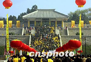 據(jù)《史記》記載:“黃帝崩,葬橋山”。黃帝陵所在的橋山,總面積為8500余畝,下有沮水環(huán)繞,南與印臺山相望,山上有古柏8萬余株,千年以上古柏3余萬株,是我國最大的古柏群。黃帝陵園面積10余畝,陵前設有祭亭,內立郭沫若親書“黃帝陵”碑。陵冢高3.6米,陵園周長48米。園內古柏參天,一派莊嚴肅穆的氣氛。每年清明節(jié)、重陽節(jié),海內外炎黃子孫聚集橋山,舉行隆重的祭祀大典。陵園入口處有“漢武仙臺”,高數(shù)10米,拾級而上,縣城、東灣盡收眼底。