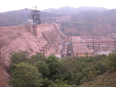 | 三門峽大壩距市區(qū)14公里,屬國家3A級旅游區(qū)。是建國后我國在黃河上興建的第一座大型水利樞紐工程。1957年4月13日開工興建,1960年10月大壩建成蓄水。主壩為混凝土重力壩,壩長713.2米,最大壩高106米;副壩為鋼筋混凝土心墻土壩,長144米,最大壩高24米。主、副壩總長為857.2米。電站廠房為壩后式,全長223.88米,寬26.2米,可安裝8臺發(fā)電機組,現(xiàn)有7臺機組,發(fā)電量41萬千瓦,為低水頭徑流發(fā)電。三門峽大壩工程之大,氣魄之雄,當(dāng)時在我國首屈一指,也為世界矚目。以后,工程又進(jìn)行改建,庫區(qū)淤積大為減輕,進(jìn)出庫泥沙基本平衡,實現(xiàn)了防洪、防凌、灌溉和發(fā)電、供水等綜合效益。并可控制黃河流域面積的91.5%。僅發(fā)電一項,截至1986年已全部收回國家對這項工程的投資。