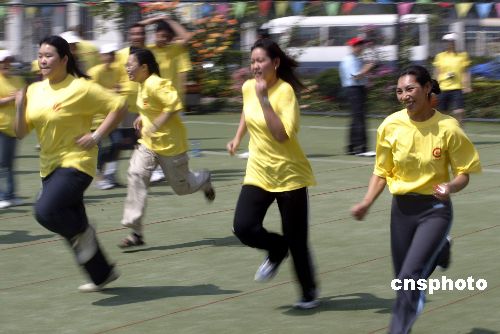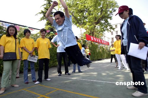 五月二十日,北京華文學(xué)院在北京舉行運(yùn)動(dòng)會(huì),來自十七個(gè)國家的二百多名學(xué)生以及全體教職工參加了趣味橫生的運(yùn)動(dòng)會(huì)。圖為學(xué)生們?cè)诎耸渍鄯蹬艿谋荣愔。作者:盛佳鵬