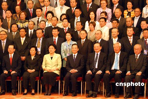 五月二十日,中國國務(wù)院總理溫家寶、國務(wù)委員唐家璇、全國政協(xié)副主席劉延?xùn)|、全國政協(xié)副主席羅豪才、國務(wù)院僑辦主任陳玉杰等在北京人民大會堂會見“第三屆世界華僑華人社團(tuán)聯(lián)誼大會”的全體與會代表并合影留念。作者:張勤