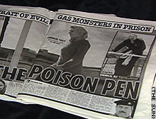 中新網(wǎng)5月22日電 周六《太陽報》刊出的被稱為“化學(xué)阿里”的薩達(dá)姆的堂弟阿里·哈桑·馬吉德和被稱為“炭疽夫人”阿馬什的監(jiān)獄生活黑白照片。照片中的化學(xué)阿里頭發(fā)灰白,身著浴袍,拄著拐棍,手里搭著一條毛巾,正哈腰弓背從椅子上站起來;49歲的“炭疽夫人”比實(shí)際年齡蒼老了許多,戴著一條普通頭巾在戶外散步。(春風(fēng))