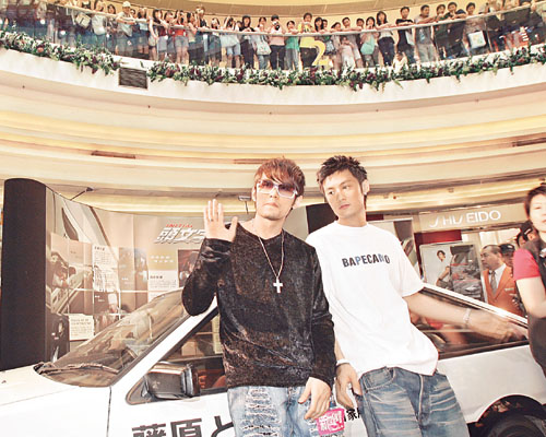 中新網(wǎng)6月13日電 據(jù)香港媒體報(bào)道,由周杰倫、陳冠希及余文樂等人主演的《頭文字D》將于本月底上映,身為主角的周杰倫昨日特地來港與余文樂出席于商場(chǎng)舉行的新片宣傳活動(dòng),吸引過千途人及fans捧場(chǎng)。其中三百多名Jay的fans更高舉了“影帝”牌為偶像撐場(chǎng)吶喊,望他憑此片勇奪影帝,現(xiàn)場(chǎng)十分熱鬧。