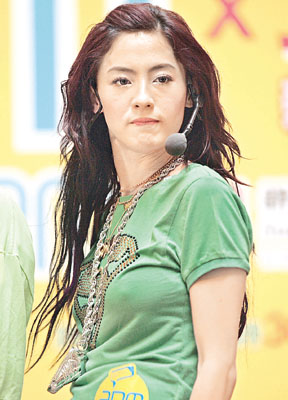 昨天柏芝穿上綠色T恤襯低腰褲作hip hop打扮,跳舞時(shí)卻配上“特別效果”,胸前出現(xiàn)“凸點(diǎn)”現(xiàn)象之余,黑色內(nèi)褲邊也隨著拍子頻頻曝光。柏芝更是語(yǔ)出驚人,在與fans跳舞時(shí),她竟向fans說(shuō):“你用下面(下半身)頂住記者就得!笔植晃摹.(dāng)她唱《新聞女王》時(shí),有人假扮狗仔隊(duì)偷拍她,柏芝就用屁股把他頂開(kāi)。