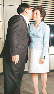 中新網(wǎng)6月22日電 據(jù)香港東方日?qǐng)?bào)報(bào)道,曾蔭權(quán)成為香港新的特首后,妻子鮑笑薇首次娓娓道來(lái)她與丈夫相識(shí)、相愛(ài)的經(jīng)過(guò)和相處之道。