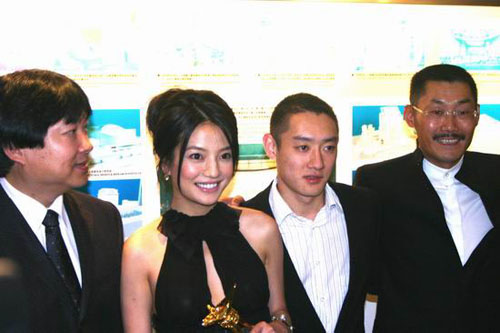 據知當晚汪雨一身講究衣著,一直陪伴著趙薇,還不時跟她咬耳仔。到頒獎禮結束后,趙薇到后臺與導演霍建起及監(jiān)制何平合照時,汪雨立刻快步趕來,導演見狀便讓位給他,而趙薇見到心上人就笑得更加甜。這是兩人首次公開亮相,可見戀情已趨成熟。