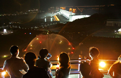 從明天起,斬斷長江的三峽大壩,每天將允許1000名普通游客把這個龐然大物“踩”在腳下!7月1日,三峽大壩壩頂將首次對游客開放,但今年的開放時間因施工需要到9月30日截止,到明年汛期再行開放。本報記者于昨日趕到壩區(qū)并星夜上壩,打探到壩頂旅游臺前幕后諸多細(xì)節(jié)。
