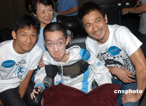 中新網(wǎng)7月5日電 據(jù)香港媒體報道,劉德華昨日以嘉賓身份出席“娛藝院線有限公司(UA院線)慶祝香港開業(yè)二十周年”,大會更與“愿望成真基金”合辦愿望樹籌款活動,為幫助罹患重病的兒童,華仔自掏腰包拿出“金!本杩,原來他十年來探訪這班患病兒童,其中兩名患肌肉萎縮癥和腦癌的病人,昨日亦有到場送上鮮花答謝偶像。
