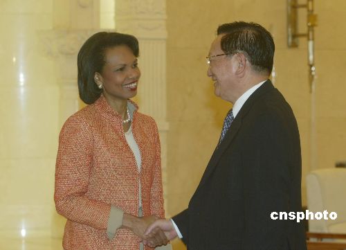 中新網(wǎng)7月10日電 國務(wù)委員唐家璇10日在人民大會堂會見了來訪的美國國務(wù)卿賴斯。雙方就朝鮮半島核問題交換了意見。
