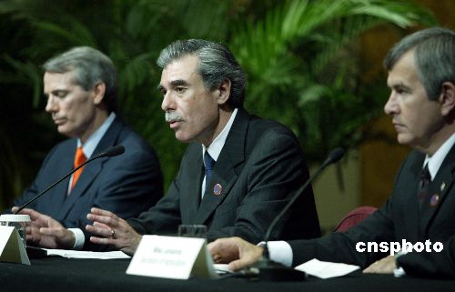 七月十一日晚,美國(guó)商務(wù)部長(zhǎng)古鐵雷斯、美國(guó)貿(mào)易代表波特曼、美國(guó)農(nóng)業(yè)部長(zhǎng)約翰斯在北京召開記者會(huì),就第十六屆中美商貿(mào)聯(lián)委全會(huì)情況回答記者提問(wèn)。作者:廖文靜