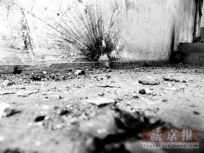 昨天下午,事發(fā)現(xiàn)場被炸的情景還保留著。爆炸的地點(diǎn)位于第303干部學(xué)校宿舍樓一樓的樓道門口,在樓道里遍地都散落著土屑和被震落的墻皮。在樓道東墻和西北墻角上共有3處爆炸物爆炸時(shí)留下的黑色痕跡。樓道的南墻被炸開一條長三四十厘米、寬約一厘米的裂縫。