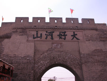 大境門門墻高12米,底長13米,寬9米,有木質(zhì)鐵皮大門兩扇。門楣上“大好河山”四個(gè)大字由當(dāng)時(shí)的察哈爾都統(tǒng)高維岳書寫。