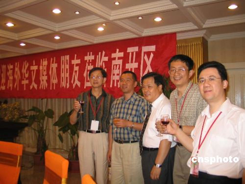 第三屆全球華文論壇九月將在中國(guó)武漢舉行,海外華文傳媒高度關(guān)注。本月中旬,三十余家海外華文媒體老總、記者集中采訪京津,他們紛紛向東道方的中新社表示,積極參與華文論壇,促進(jìn)全球華文媒體共同發(fā)展。圖為中新社副總編夏春平(左二)、天津市僑辦主任張福林(中)看望在天津采訪的華文媒體老總、記者。作者:柳俊武