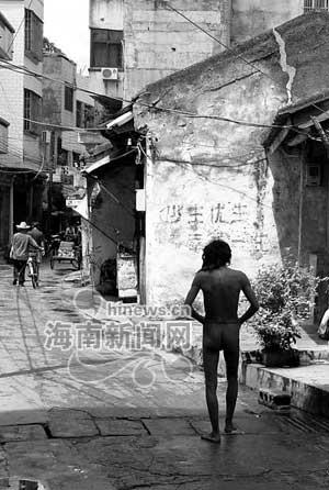 7月4日上午11點20分,記者采訪路過?谑腥齺喗,剛走到博愛街道辦三亞居委會門口,就聽到不遠處傳出一聲女子的尖叫。記者循聲望去,只見一名年輕女子手上拿把傘,驚慌地從小巷跑出來。在她的身后,緊跟著一名赤身裸體的男人,披著篷亂的長發(fā)。見女子跑到人多的地方,追她的男子沒有跟出來,而是轉身朝三亞下街方向走去。記者正欲報警,請警方來控制追女人的赤裸瘋子,對方已跑得沒了影。