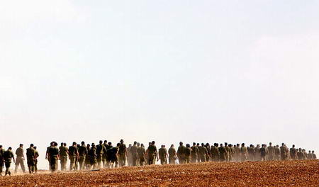 中新網(wǎng)7月20日電 據(jù)路透社報(bào)道,2005年7月19日,幾名正在巡邏的以色列士兵列隊(duì)走過加沙定居點(diǎn)的一處建筑物。