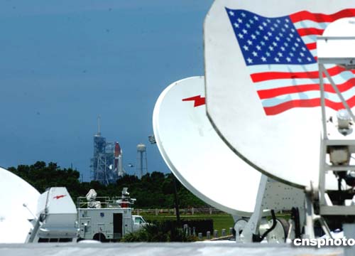 美國眾多媒體已在肯尼迪航天中心架好天線,連續(xù)報(bào)道航天飛機(jī)“發(fā)現(xiàn)號”最后的倒計(jì)時(shí)發(fā)射進(jìn)程。作者:賈國榮