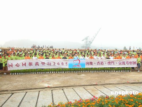| 7月27日,“同心同根萬里行2005—偉大建設(shè)之旅”三峽宜昌考察活動(dòng)啟動(dòng)儀式在三峽工程截流紀(jì)念園隆重舉行。來自香港、澳門和內(nèi)地的400多名青少年將香江、濠江、長江之水融合共同澆灌了象征友誼、和平的“同心同根樹”。啟動(dòng)儀式后,三地青少年參觀了三峽大壩壩頂、壇子嶺景區(qū)、三峽工程展覽館。此次來宜的代表團(tuán)是由香港童軍總會(huì)、香港海事青年團(tuán)、香港少年領(lǐng)袖團(tuán)、澳門紅十字會(huì)、澳門童軍總會(huì)等十四個(gè)青少年制服團(tuán)體聯(lián)合組織的。作者:劉洪進(jìn)
