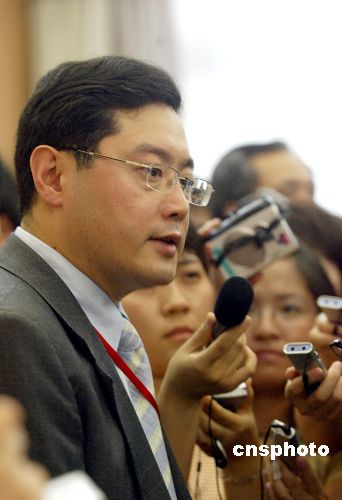 圖:六方會談中方發(fā)言人秦剛與記者非正式見面會