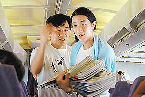 中新網(wǎng)8月2日電 據(jù)新明日?qǐng)?bào)報(bào)道,國(guó)際影壇巨星成龍?jiān)诩∑聲r(shí),忍不住大罵兒子房祖名懶散。他受訪時(shí)談起兒子,越說(shuō)越氣,狠批兒子“跑步跑不過(guò)我、打又打不過(guò)我,連舉重也不夠我。”他也罵兒子不愛(ài)運(yùn)動(dòng),每天只顧打電玩、上網(wǎng)、傳簡(jiǎn)訊、吃零食,連坐下來(lái)的姿態(tài)也很慵懶,“真的很令人討厭”!