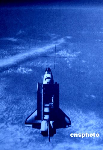 圖:發(fā)現(xiàn)號航天飛機向地球家園圍繞飛行
