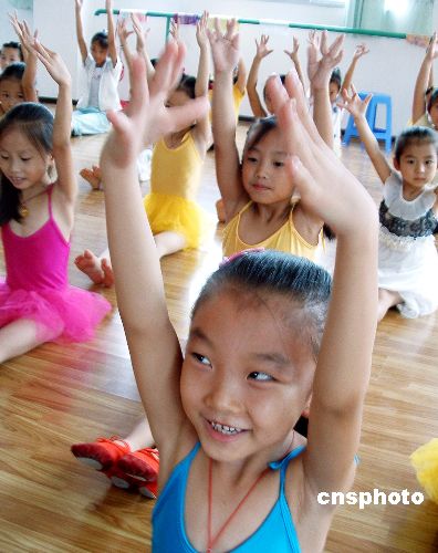 | 8月10日,重慶云陽百名少年兒童在“我是小明星”舞蹈夏令營訓(xùn)練中心開展健身活動(dòng)。暑假期間,重慶大學(xué)舞蹈系畢業(yè)的周娟等3名返鄉(xiāng)大學(xué)生利用休息時(shí)間,開辦“我是小明星”舞蹈夏令營,對(duì)家鄉(xiāng)下一代進(jìn)行素質(zhì)拓展訓(xùn)練。作者:饒國君