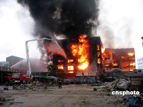 起火樓房位于一水產(chǎn)批發(fā)市場附近,是澄海利嘉織藝有限公司的物料倉庫。當(dāng)時,住在起火廠房附近的陳先生突然聞到一股刺鼻的臭味,趕緊起身察看。發(fā)現(xiàn)該倉庫已是濃煙滾滾,不停有火苗冒出,于是立即報警求救。十分鐘后消防車迅速抵達(dá)現(xiàn)場滅火。這時,樓內(nèi)不斷有火苗冒出,火勢不斷往二三樓蔓延,雖然有多部消防車在現(xiàn)場聯(lián)合作戰(zhàn),但仍遏制不住愈燃愈烈的大火。由于大火燃燒毛紗等大量可燃物,很快整幢毛紗倉庫陷入熊熊大火中,方圓兩公里范圍內(nèi)幾乎被濃煙籠罩。