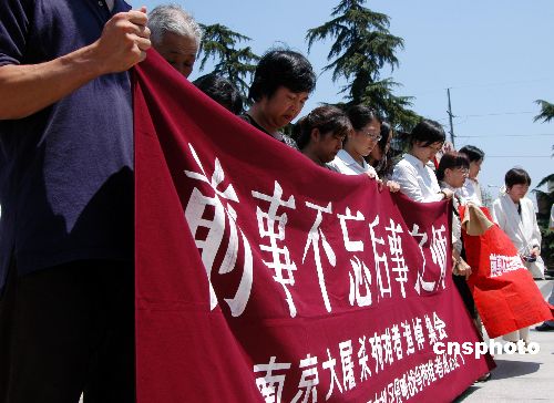 炎炎烈日下,日本“銘心會·南京第二十次訪華團(tuán)”、“神戶--南京心連心”第八次訪華團(tuán)、“日中友好希望之翼訪華團(tuán)”在悼念廣場分別向南京大屠殺遇難者敬獻(xiàn)了花圈,并深致默哀。