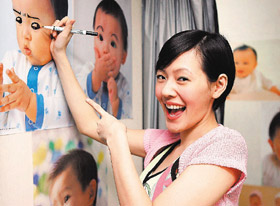 中新網(wǎng)8月19日電 據(jù)臺(tái)灣媒體報(bào)道,自從小S懷孕以后,八大對(duì)小S百般禮遇,除了體諒她因?yàn)閼言卸鴮⒁V拱舜髪蕵?lè)百分百的錄像以外,細(xì)心的工作人員還在她的化妝間里,布置了將近10幅寶寶的海報(bào),希望小S“看著可愛(ài)的寶寶,就可以生出可愛(ài)的寶寶。”