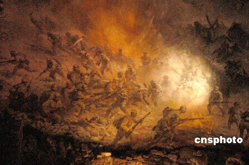 臺(tái)兒莊戰(zhàn)火烽煙,尸橫遍野,戰(zhàn)友們胸掛手榴彈,紛紛與日軍裝甲車(chē)同歸于盡。四天時(shí)間,敢死隊(duì)擊斃日寇四百余人,而一百七十人的敢死隊(duì),也僅余二十九人。