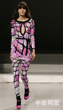 2006年2月20日,米蘭時裝周,一名模特正在展示意大利設(shè)計師Emilio Pucci 的2006/2007秋冬女裝作品。