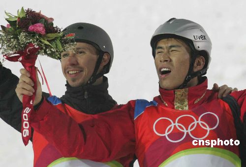 組圖:韓曉鵬奪得冬奧會空中技巧金牌