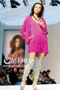 幾大品牌紛紛提倡“拜金”,卻各有“金招”,其中最出位的要屬M(fèi)ARINA RINALDI。但見普通的白襯衫被釘上了金色鉚釘,休閑長褲的外側(cè)爬滿金光閃閃的蝴蝶與花草,長長的頸巾布滿了金色閃片,針織背心的肩頭被金屬片飾加以勾勒,就連風(fēng)衣前襟都散落著大大小小的金屬閃片,令人拍案叫絕。