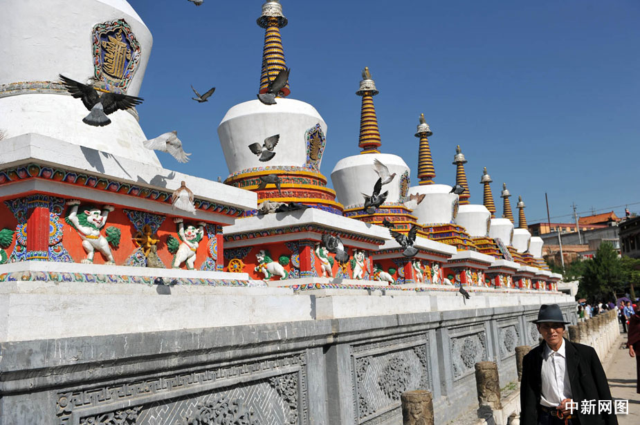 圖為塔爾寺門(mén)前的“如來(lái)八塔”。中新網(wǎng)記者 金碩 攝