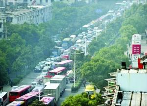 11月5日,南昌市青山南路一處加油站,大量的車輛排成長隊等待加柴油,造成了該路段出現(xiàn)嚴重擁堵。本報傳真圖