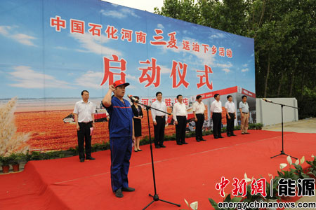 在啟動儀式上,中國石化股份公司高級副總裁章建華表示:我們將全力做好“三夏”供油服務(wù)工作,一是增加作業(yè)區(qū)用油供應(yīng),確保農(nóng)機用油資源充足,不讓廣大農(nóng)民朋友為油品供應(yīng)擔憂;二是確保所供油品“100%合格、100%量足”;三是設(shè)立農(nóng)機專供站和“三夏”商品專柜,推行惠農(nóng)價格;四是在加油站開辟“三夏綠色通道”,方便農(nóng)機手;五是組織青年志愿者“送油到田間地頭”,農(nóng)機開到哪里,我們的油品就供到哪里。
