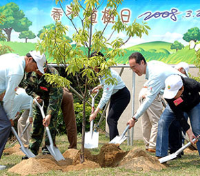 中新網3月31日電 據(jù)香港特區(qū)政府網站消息,香港“2008年植樹日”日前在東涌白芒舉行,栽種逾萬株樹苗,并把植樹范圍命名為“奧運林”,營造奧運氣氛及推動“綠色奧運”。