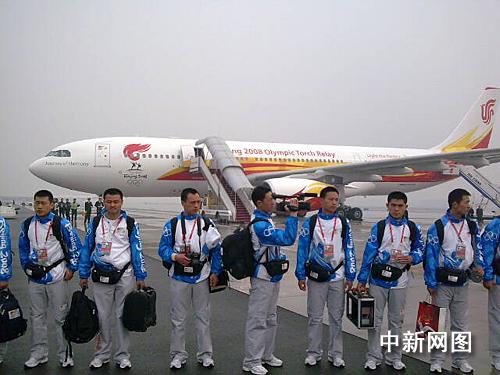 圖:北京奧運圣火包機啟程前往阿拉木圖傳遞