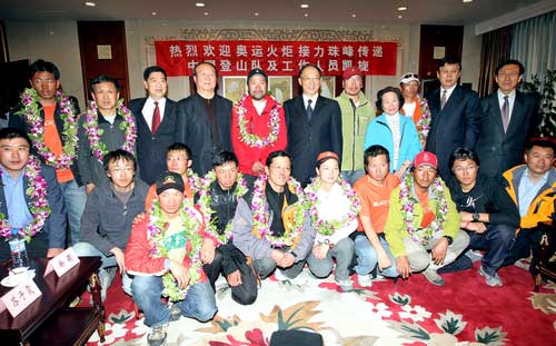 奧運圣火珠峰傳遞團隊部分隊員及工作人員返京