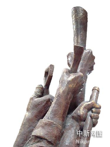 中新網(wǎng)北京6月2日電 (記者 賴海隆)5月31日晚,一尊名為“高擎圣火,克難興邦”的“5.12”大型紀(jì)念雕塑出現(xiàn)在“2008奧運(yùn)景觀雕塑方案征集大賽頒獎(jiǎng)活動(dòng)”現(xiàn)場(chǎng)。專程從重災(zāi)區(qū)趕來的十余名北川中學(xué)的幸存者與作者一起共同為此尊雕塑揭幕。這一象征中國(guó)人表達(dá)自強(qiáng)不息,重建家園,辦好奧運(yùn)決心的一幕,將現(xiàn)場(chǎng)氣氛推向了高潮。