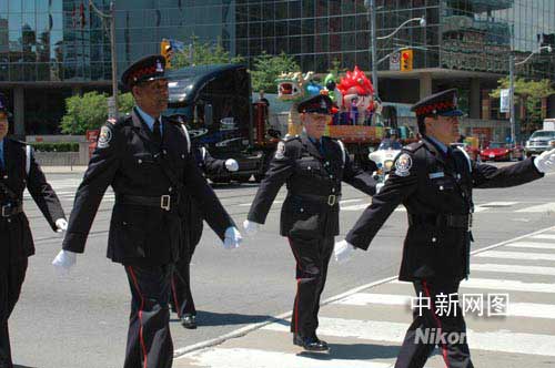 龍舟節(jié)花車巡游在中國傳統(tǒng)的舞龍帶領(lǐng)下,從多倫多市區(qū)出發(fā),由多倫多警察開道護航,穿過多倫多士巴丹那大道、唐人街、學(xué)院路、大學(xué)街等主要繁華街道,經(jīng)過多倫多大學(xué)、安大略省議會大廈、政府大樓,最后抵達女王公園,行程近5公里。北京奧運主題的花車巡游給多倫多市民們帶來了一份特別的驚喜和祝福。奧運福娃和龍舟所經(jīng)之處,受到街道兩旁多倫多市民的熱烈歡迎,大家紛紛與之合影留念,并向游行隊伍歡呼致意。