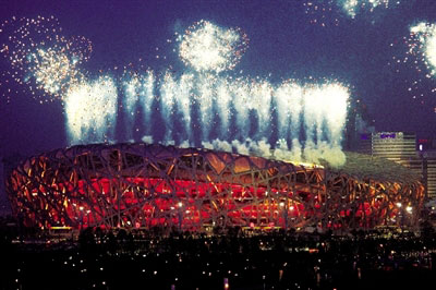 組圖:“鳥(niǎo)巢”首次全身亮燈彩排 并試放禮花(3)