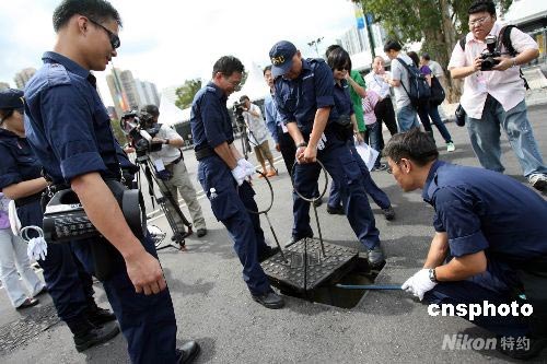 七月十八日,香港警方特別行動隊在沙田奧運馬術賽場周圍進行搜查。香港奧運馬術的安保工作目前仍處于最初階段,未來數(shù)周內將會徹底搜查所有的奧運馬術場地,然后封鎖。中新社發(fā) 洪少葵 攝