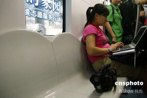 據(jù)地鐵工作人員介紹,地鐵10號(hào)線新車的座椅靠背升高了15到20厘米,而且是圓弧形的,乘客乘坐起來(lái)將更加舒適。中新社發(fā) 富田 攝