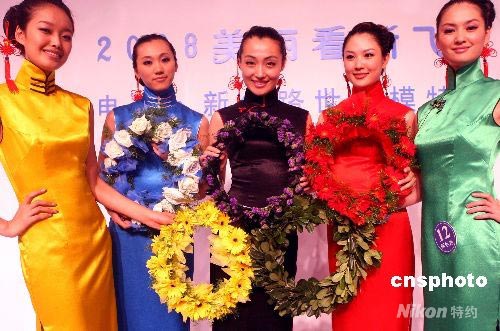 7月20日,2008美麗看新飛--新絲路世界模特大賽中國(guó)區(qū)總決賽在遼寧大連啤酒節(jié)上舉行,是次賽事經(jīng)過(guò)在中國(guó)5大城市巡演后的最后一站。15名中國(guó)賽區(qū)職業(yè)選手參加了5大城市巡演選拔,最后角逐出了10名最佳模特參加10月在北京舉行的新絲路世界模特大賽國(guó)際總決賽。圖為參賽模特選手身穿五色旗袍展示五環(huán)奧運(yùn)風(fēng)采。 中新社發(fā) 錢興強(qiáng) 攝