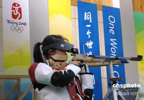 7月21日上午8時30分,也就是8月9日奧運女子10米氣步槍比賽的時間,中國隊在此項目上爭金雙保險之一的趙穎慧,持槍站在奧運比賽場館10米館的射擊位上,真槍實彈模擬了一場奧運首金爭奪戰(zhàn)。中新社發(fā) 魏群 攝