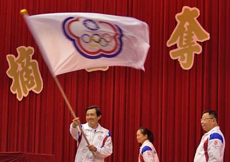 7月30日,馬英九在高雄向出席北京奧運(yùn)的中華臺北隊(duì)授旗。