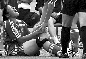 經(jīng)過專家會診,基本確定馬曉旭為左膝十字韌帶撕裂,打奧運(yùn)會已經(jīng)不可能。昨晚18時50分,馬曉旭被女足隊(duì)醫(yī)背上了出租車,返回了足校。隊(duì)員和教練都到房間里進(jìn)行了安慰,但卻換不回馬曉旭的一絲笑容。今日,她將來北京做進(jìn)一步檢查。
