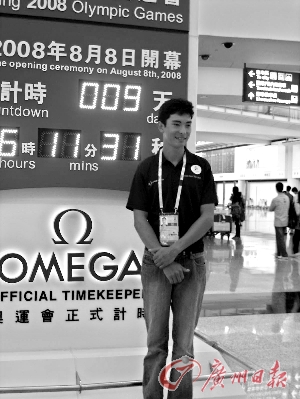 華天在香港的奧運(yùn)倒計(jì)時(shí)牌下留影。特派記者 張順亭 攝