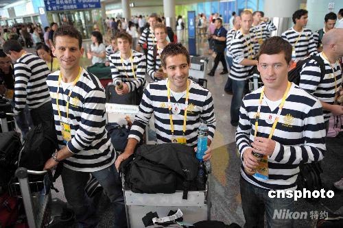 8月1日,澳大利亞曲棍球男隊(duì)一行飛抵北京,參加本屆夏季奧運(yùn)會。澳大利亞男隊(duì)將于8月11日對陣加拿大隊(duì)展開首場曲棍球賽。 中新社發(fā) 陳文 攝